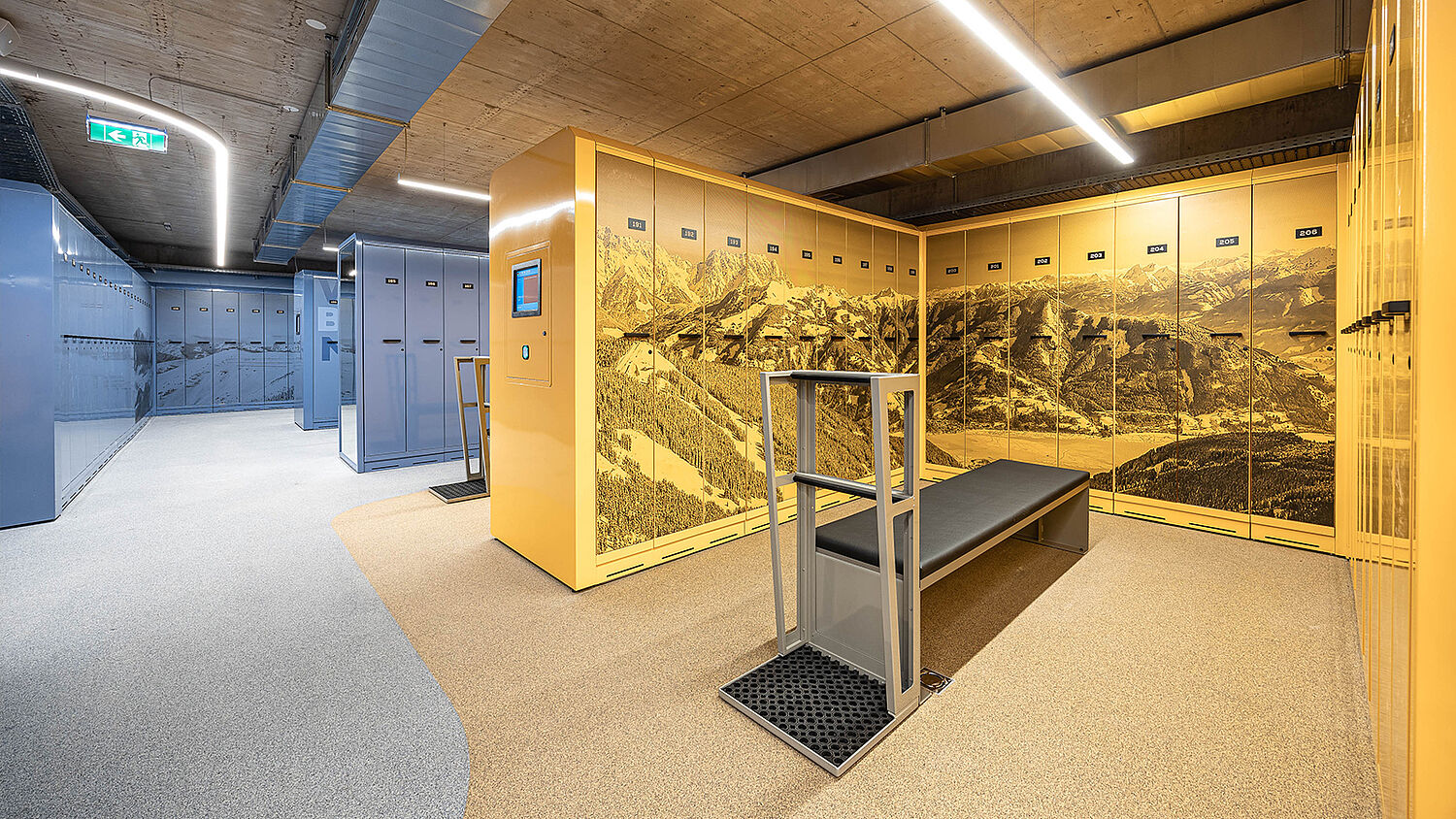 Ein besonderes Highlight des neuen Shops ist das hochmoderne Skidepot mit Platz für bis zu 3.300 Skiausrüstungen. Die beheizbaren Depotkästen sind direkt an die Skipiste angebunden. Zwei Aufzüge verbinden den Abschwingplatz direkt mit dem Depot und garantieren kurze und praktische Wege. Diese Infrastruktur ermöglicht den Gästen maximalen Komfort, indem sie, ihre Skiausrüstung bequem verstauen und sicher lagern können ohne weite Wege in Kauf nehmen zu müssen. Einer stressfreien und bequemen Anreise mit geringem Gepäck steht dadurch nichts mehr im Wege.