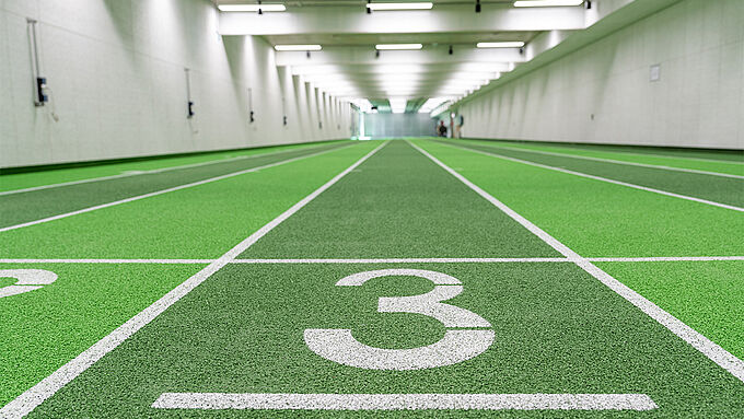 Für die Lauf- und Schießhalle wurde das System REGUPOL champion AG installiert. Dabei handelt es sich um einen gießbeschichteten, fugenlosen Sportboden, der auf die Anforderungen eines kombinierten Lauf- und Schießtrainings ausgelegt ist.