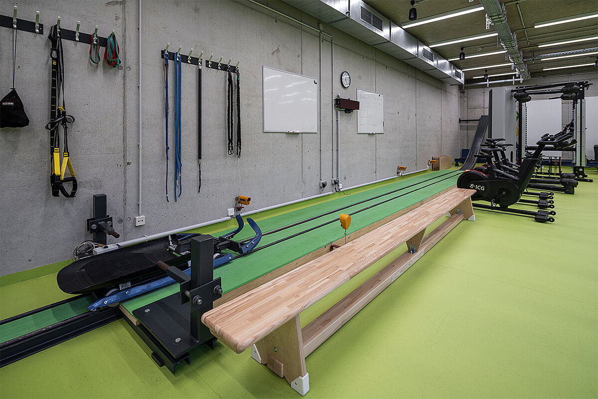 Der elastische Boden unterstützt die Kraftübertragung beim Anschieben, wirkt stoßdämpfend und gelenkschonend und bietet damit geeignete Voraussetzungen für präzises und kraftvolles Training.